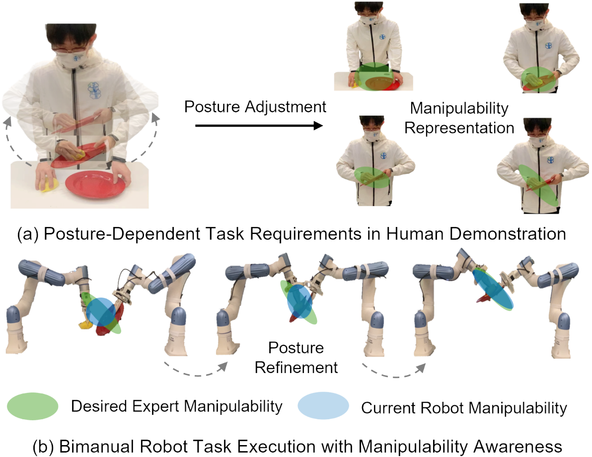 We propose Manipulability-Aware Diffusion Policy (ManiDP), a novel imitation learning method that not only generates plausible bimanual trajectories, but also optimizes dual-arm configurations to better satisfy posture-dependent task requirements.