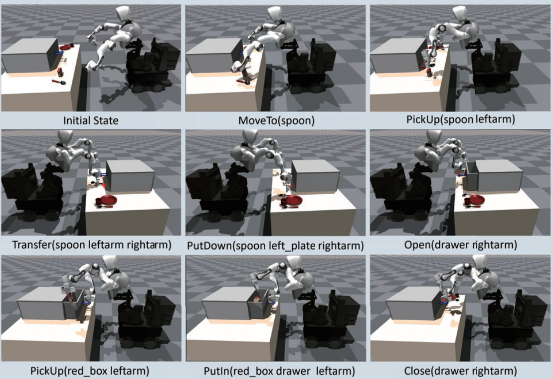 A generalizable framework that combines a Large Language Model, a Visual-language Model, and symbolic planning to address long-horizon bimanual mobile manipulation tasks.